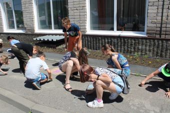 На улице желающие рисовали цветными мелками на асфальте. Ребята проявляли творчество и фантазию, поэтому рисунки получились яркими и интересными.