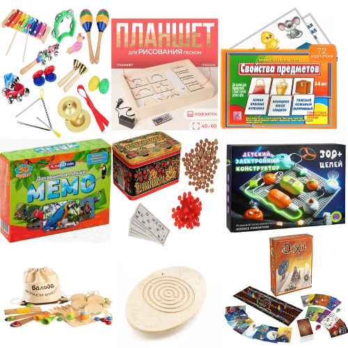 доска балансировочная «Балансборд малый», балансировочный диск массажный,  Бизиборд, игра для детей «Кольцеброс», набор развивающих игрушек Монтессори для детей, ходунки детские с игровой панелью, пирамидка «Ведерки», игра “Сложи палочки”, игровой набор «Тактильное домино»,  макси пазлы и многое другое.