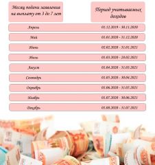 Для вашего удобства размещаем таблицу периодов предоставления доходов для назначения выплаты на ребёнка от 3 до 7 лет в 2021 году.