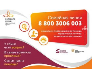 «На защите семьи и детства» создана «Семейная линия» с единым федеральным номером 8-800-3006-003, который работает ежедневно и круглосуточно, предлагая заявителям безвозмездную социально-информационную, консультационную, юридическую и иную помощь.
