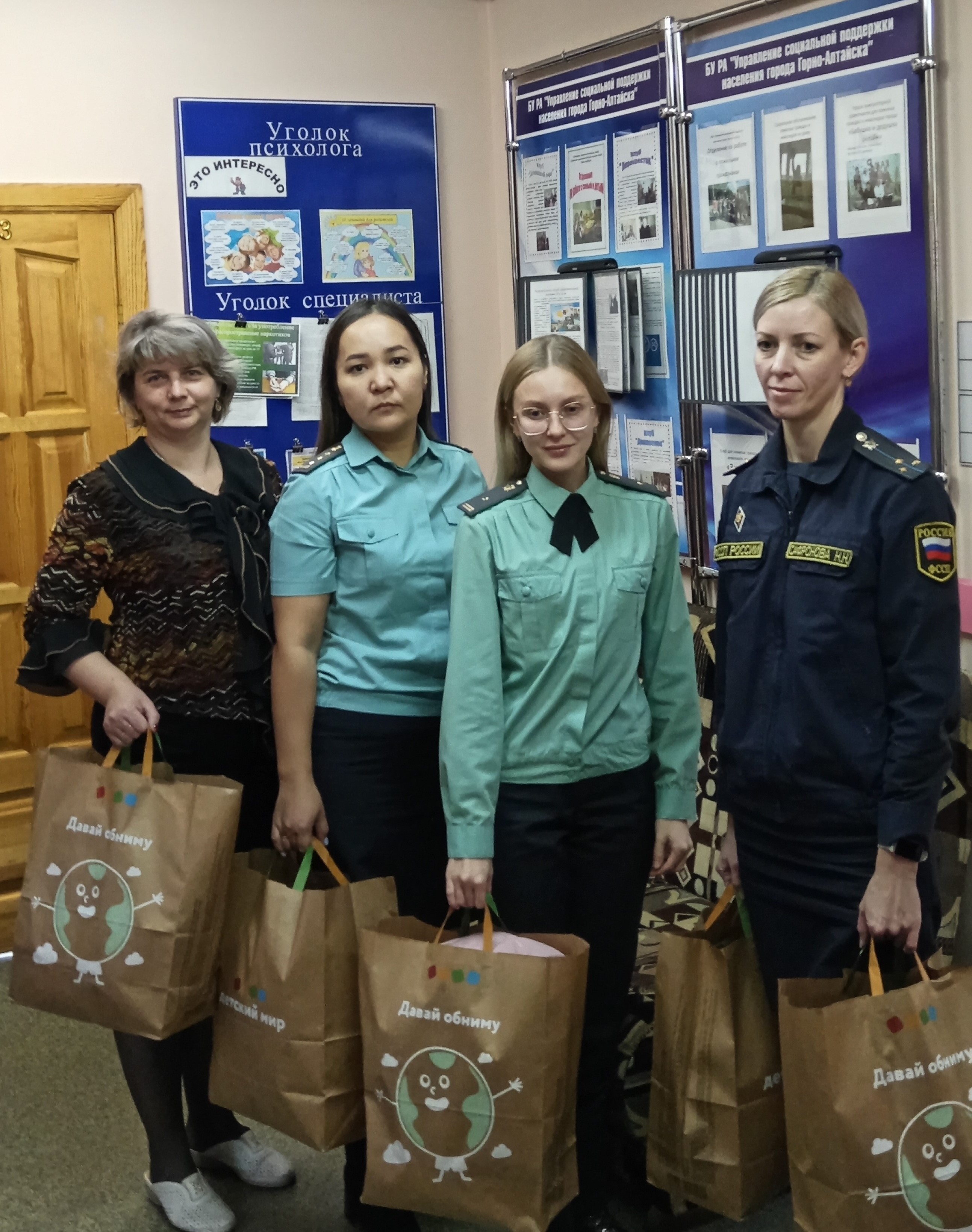 Управление социальной поддержки населения города Горно-Алтайска благодарит коллектив УФССП по РА (руководитель Наталья Витальевна Тяпкина) за отзывчивость и желает успехов в профессиональной деятельности и личного счастья. Будем рады нашему дальнейшему сотрудничеству!
