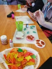 Мастер-класс был посвящён такому прекрасному времени года, как осень. Ребята научились изготавливать яркие осенние листочки, которыми затем украсили брусочки мыла.