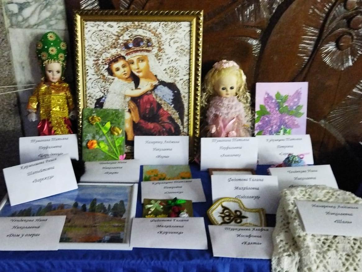 Активное участие в выставке приняли рукодельницы из клуба «Зеркало» и получатели социальных услуг на дому городского Управления социальной поддержки населения. Татьяна Петровна Кудрявцева, Раиса Шапыйтовна Кармышева, Агафья Иосифовна Туркушева, Людмила Николаевна Назаренко, Татьяна Перфильевна Туманина, Нина Николаевна Чендекова, Галина Михайловна Федотова, Надежда Дмитриевна Архипова представили свои изделия в направлениях «вязание», «шитье», «рисование картин», «изготовление кукол» и др.