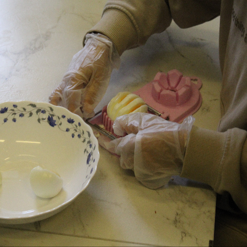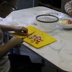 Салат - очень удобное блюдо, в котором, как правило, сочетаются несколько составляющих. Это невероятное поле для творчества, но главное - это просто, вкусно и полезно. Ребята учились работать с ножом, теркой, яйцерезкой, смешивать компоненты. Когда салат был готов – детки с удовольствием съели его.
